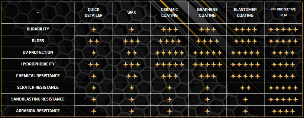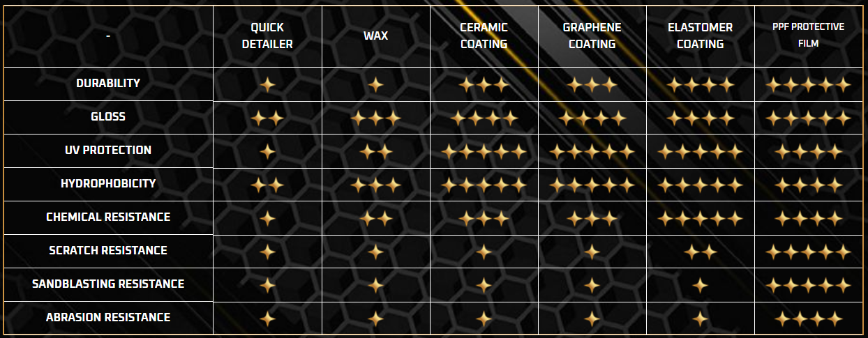 The strongest protective barrier is provided by PPF film, which effectively protects against stone chips and scratches. However, this is a more premium investment. For this reason, many drivers choose other methods, such as car wax, ceramic coating, and quick protection products such as quick detailer, which improve the appearance of the paintwork and protect it from everyday contamination.